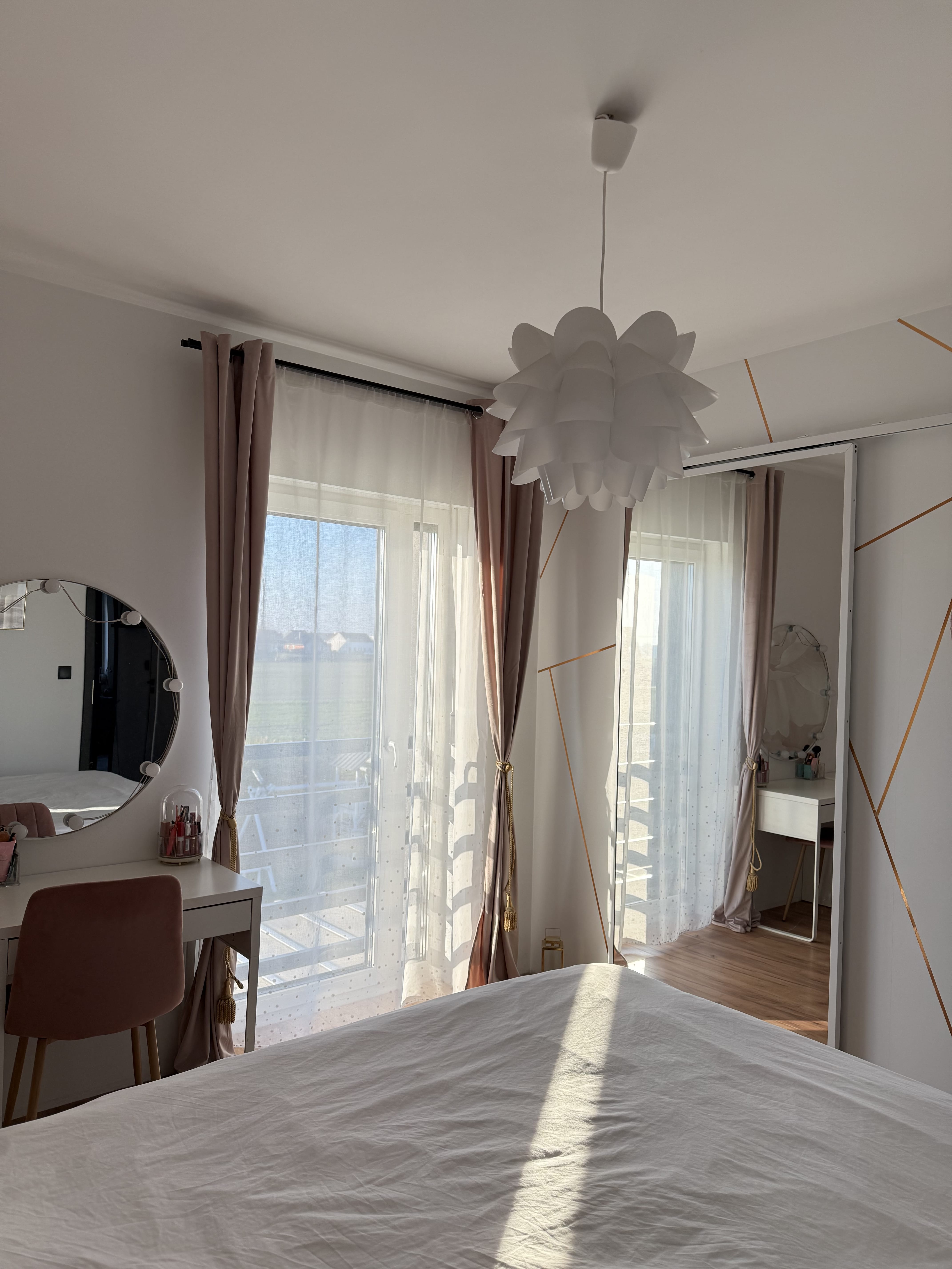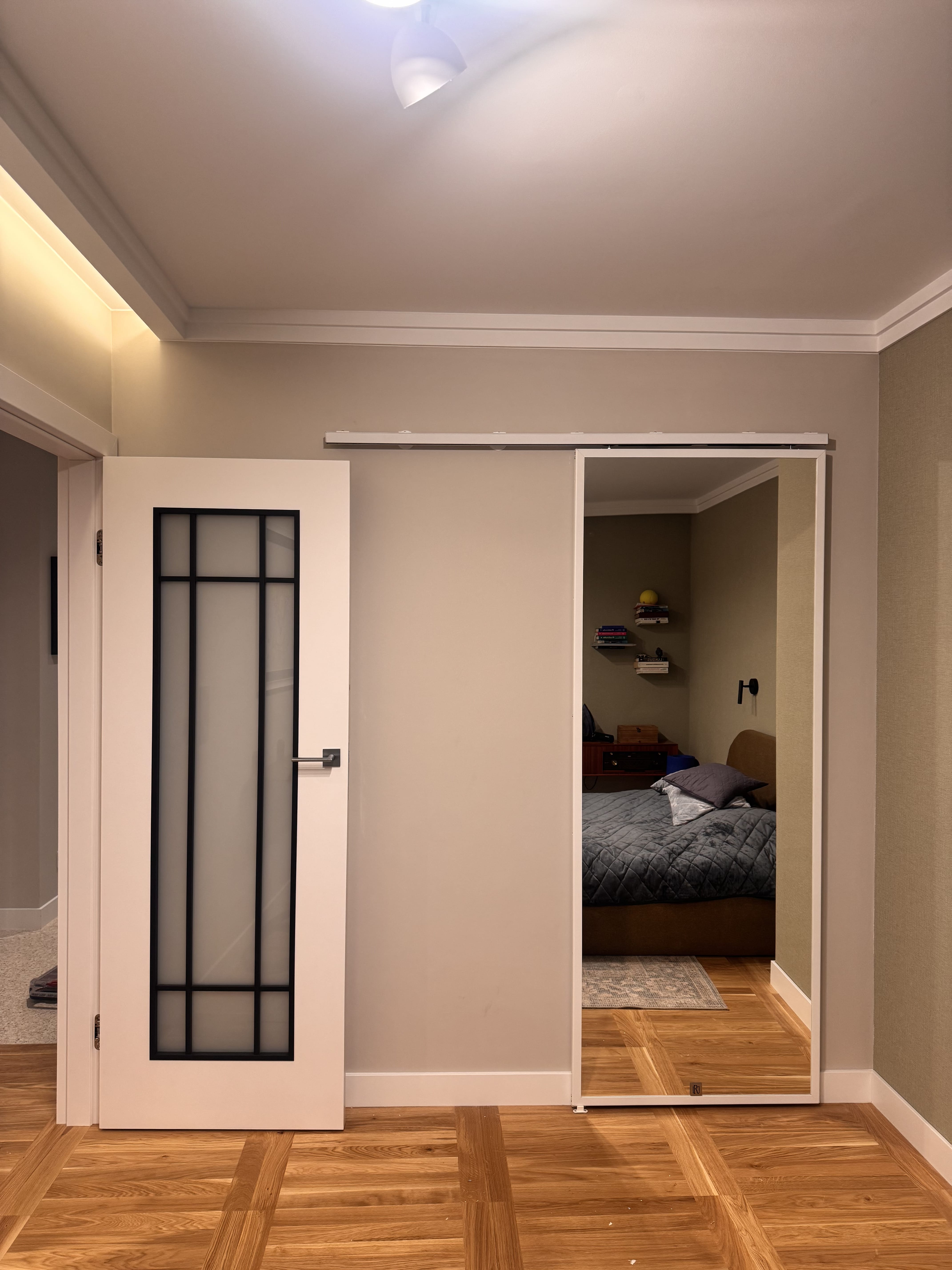 Mam u siebie drzwi przesuwne LARA od Reno drzwi i jestem naprawdę zadowolona. To model w bieli, montowany na systemie bez rolek- wszystko wygląda nowocześnie, lekko i bardzo estetycznie. Samo wykonanie robi wrażenie. Biała stalowa rama z lustrem wygląda solidnie, a tylna płyta meblowa też jest porządna i dobrze wykończona. Drzwi otwierają się zaskakująco lekko, nic nie trzeszczy, nic się nie zacina - codziennie to doceniam. Całość jest stabilna, dobrze trzyma się ściany i daje poczucie jakości. No i plus za kontakt z firmą -szybki, konkretny, bez zbędnego przeciągania. Polecam, jeśli ktoś szuka ładnych i solidnych drzwi przesuwnych.