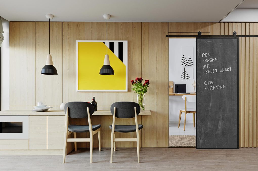 Zresztą nie tylko dzieci potrzebują miejsca do bazgrania, rysowania i pisania. Tablica umieszczona na drzwiach przesuwnych przyda się także rodzicom, którzy będą mogli notować na niej ważne sprawy do załatwienia, listy zakupów, liściki dla innych członków rodziny. Czarna, matowa tafla tablicy to modny dziś i niebanalny sposób na dodanie pomieszczeniu charakteru. A jeśli ktoś z rodziny posiada talent plastyczny, może udekorować ją wyjątkowym dziełem, które, kiedy się znudzi, zmazujemy i zastępujemy innym. Jeśli już mowa o sztuce, to płaszczyzny drzwi przesuwnych mogą posłużyć także jako tło dla gotowych obrazów. Tak wykorzystane, oprócz funkcji praktycznych, zapewnią pomieszczeniu niepowtarzalny klimat.