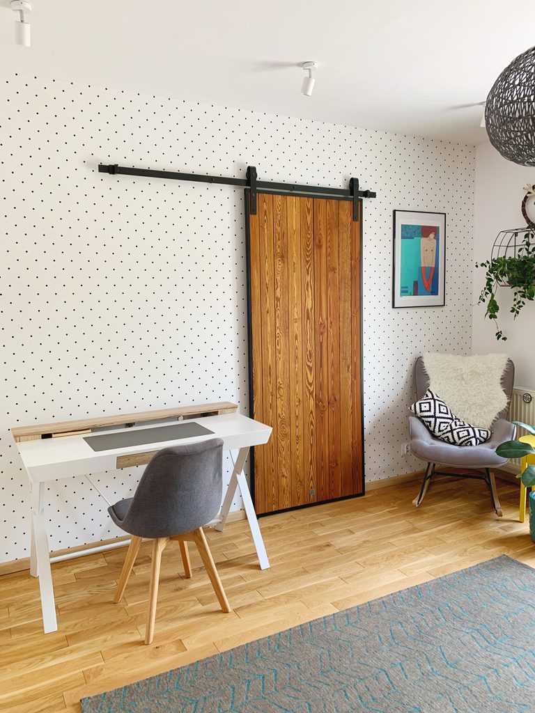 Jednym ze styli charakteryzujących wnętrza poprzemysłowe, jest styl industrial vintage. Styl ten dopuszcza nieco większą ‘przytulność’, nieco większą ilość przedmiotów i nieco większą ilość… sęków! Drewno, obecne w tych przestrzeniach w postaci blatów stołów, blatów kuchennych, starych szafek, czy właśnie drzwi, doskonale podkreśla ‚wiekowość’ murów i wydobywa zamierzony charakter ‚odzyskanego’ wnętrza. Nic tak dobrze nie obłaskawia surowego charakteru wnętrz industrialnych, jak naturalne ciepło tego materiału, doskonale widoczne w jego usłojenu. Drewniane drzwi przesuwne, których kolor dobrać można idealnie do innych drewnianych elementów obecnych w naszym industrialnym apartamencie, staną się doskonałym dopełnieniem starannie zaplanowanej przestrzeni, w której niegdyś huczały maszyny i obracały się tłoki. Tu drewno łagodzi obyczaje! Zobacz, jakie kolory drewna oferujemy w modelu Loft lub Duet, a jeśli szukasz czegoś cieplejszego, ale mniej zobowiązującego, sprawdź model z płytą OSB.