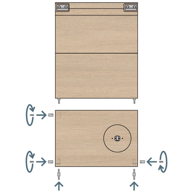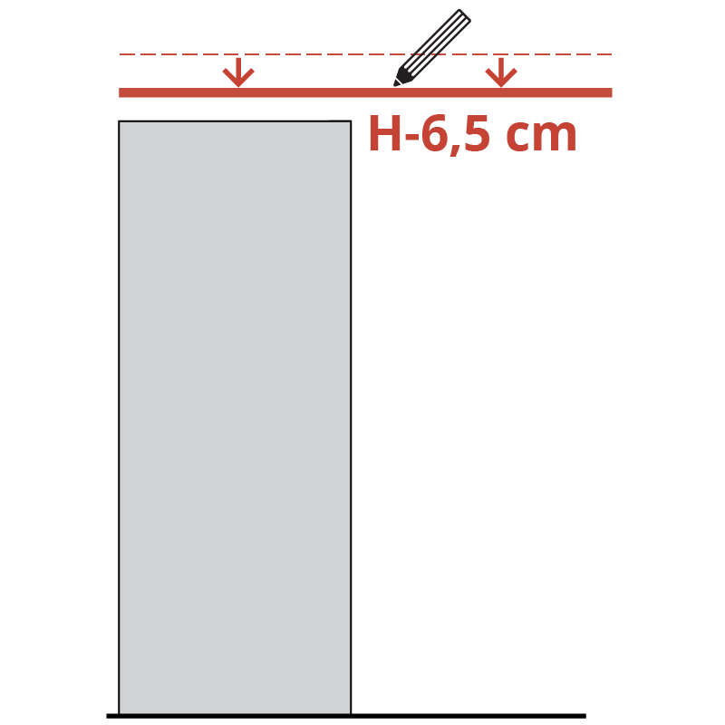 3.3. Using the value H from previous step, calculate and mark the position for the sliding track at (H – 6,5) cm. Draw the line using pencil and bubble-level.