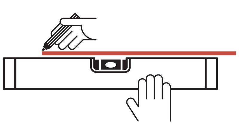 Draw the line using spirit level to get the correct level for instaling the track, otherwise the doors might slide on a tilted track.
