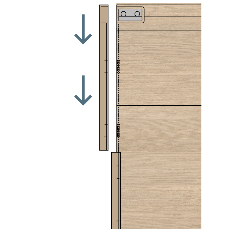 3.17. Mount the bottom guide close to the edge of the door opening (approx. 1-3 cm from the edge), so that when the door is fully open or closed, the bottom guide will always be in the door line.