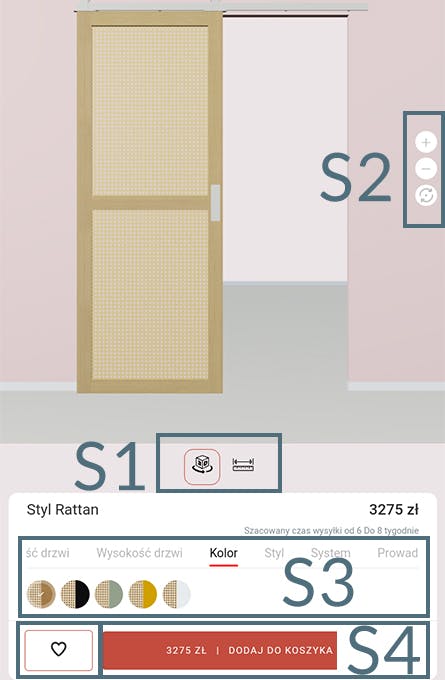 4. Elementy, które możesz edytować, będą różnić się w zależności od wybranego modelu (Sekcja S3). W przypadku drzwi Rattan będą to: