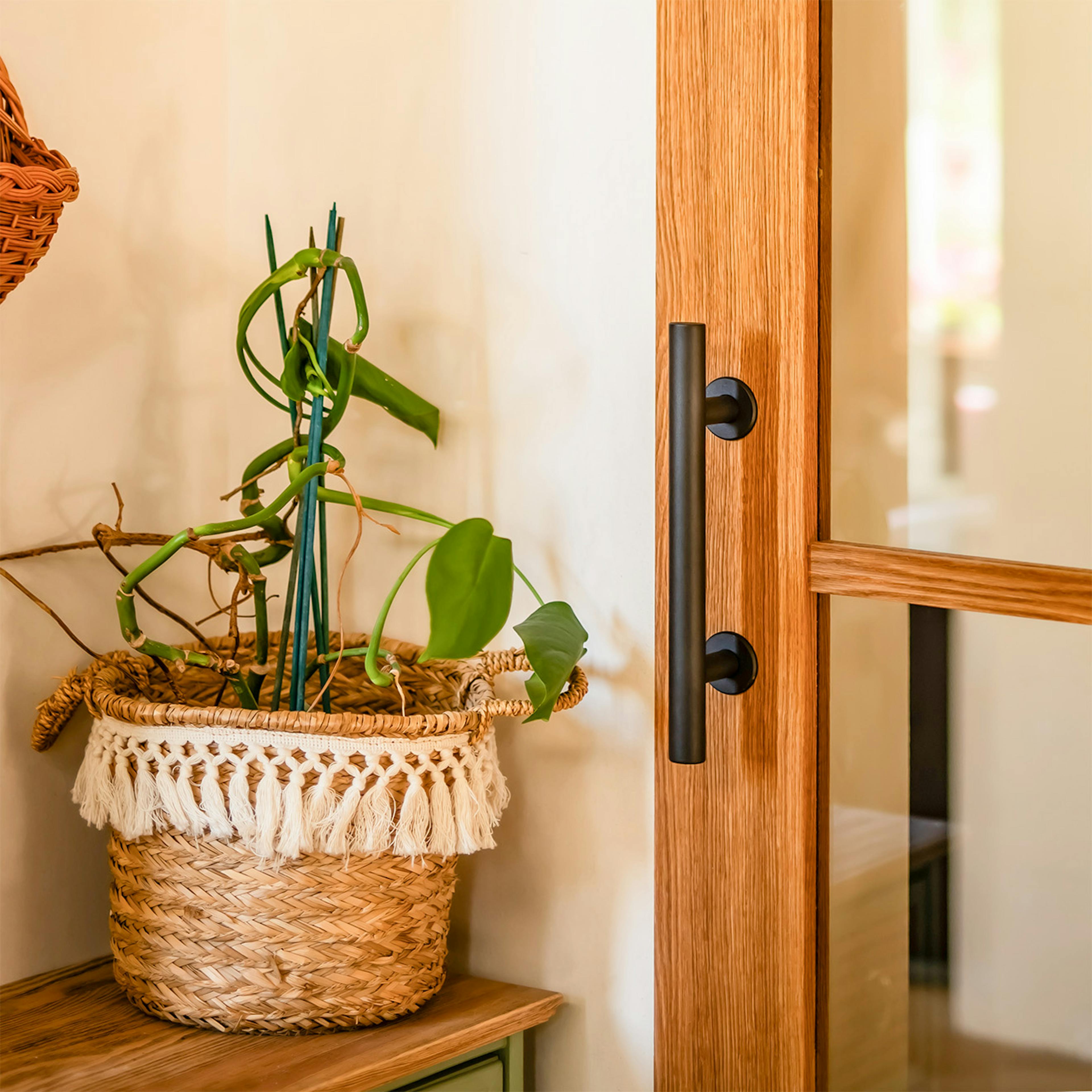 Przytulność podkreślają naturalne akcenty, takie jak kosze i osłonki na donice zrobione z trawy morskiej lub wikliny, dodając wnętrzu tekstury i warstwowości. Żywe rośliny i suszone trawy przywołują skojarzenia z naturą, sprawiając, że przestrzeń staje się niezwykle przyjazna i harmonijna.