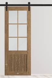 Kluczowym elementem aranżacji jest naturalne drewno dębowe o wyrazistym usłojeniu i ciepłym wybarwieniu. To ono dodaje przestrzeni autentycznego ciepła i przytulności. Dębowe drzwi przesuwne ze szprosami i przeszkleniami pełnią nie tylko funkcję praktyczną, oddzielając wiatrołap od reszty domu, ale stanowią też ciekawą ozdobę. Czarne, proste okucia i uchwyty dodają głębi i przełamują sielski charakter drzwi.