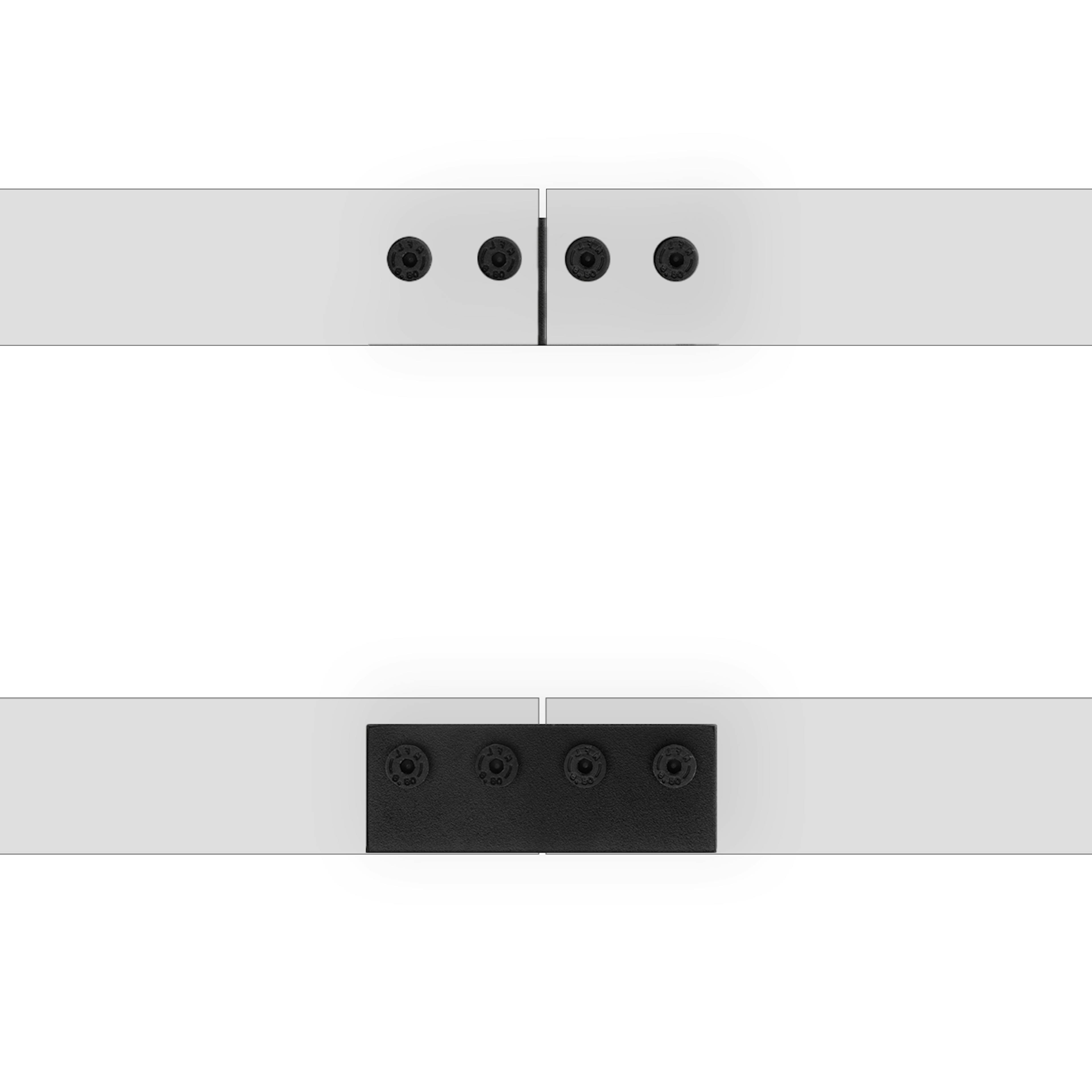 Łącznik zapewnia płynne przejście rolek jezdnych między prowadnicami, co gwarantuje bezproblemową i cichą pracę drzwi. Montuje się go z tyłu prowadnic, dzięki czemu pozostaje ukryty, a z przodu widoczne są jedynie cztery niewielkie śrubki.