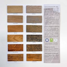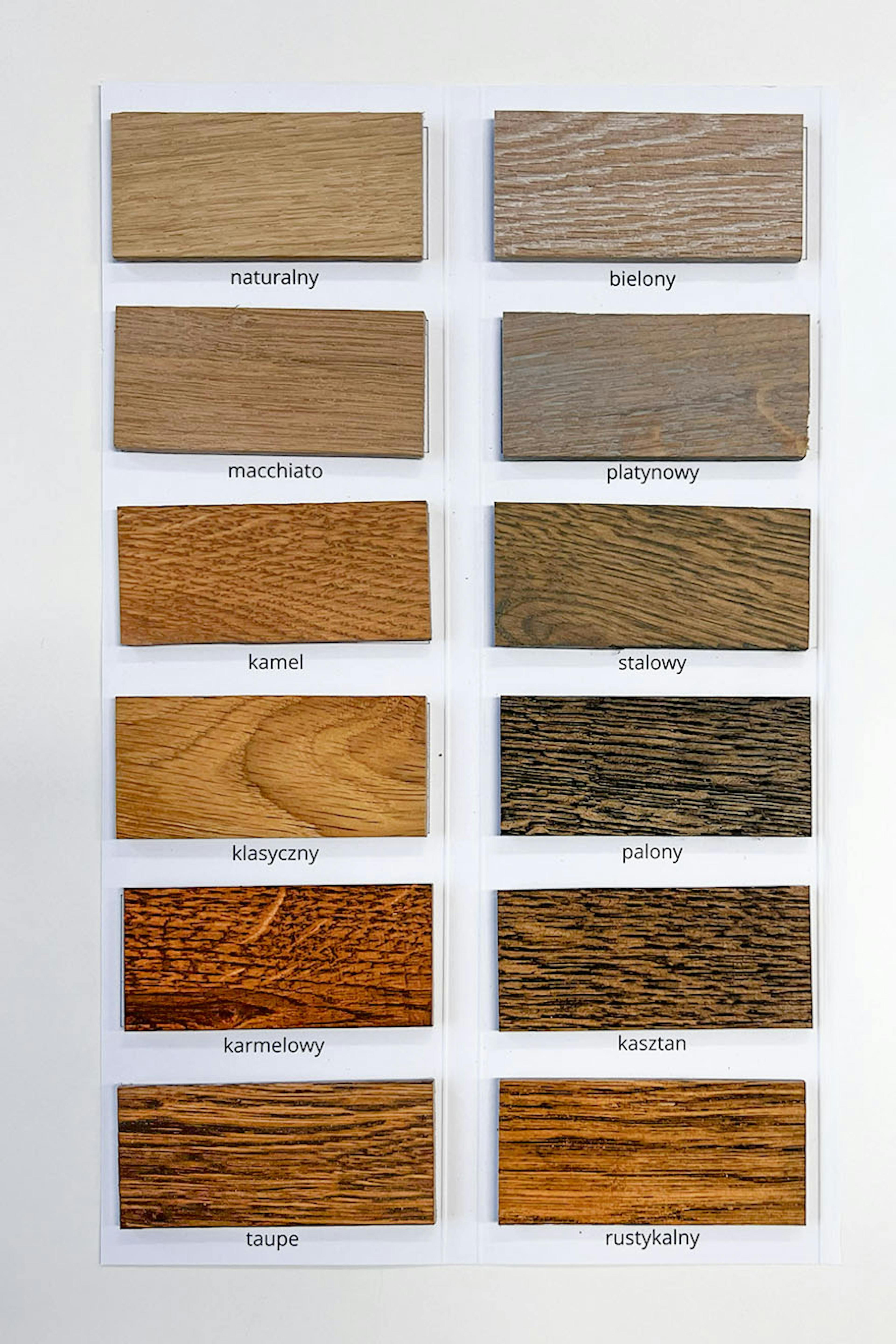 We wzorniku prezentujemy wszystkie nasze dostępne wybarwienia. Jeżeli po obejrzeniu wzornika w świetle swojego wnętrza wahasz się między kilkoma odcieniami, zachęcamy do zamówienia większych próbek na drewnie. Próbki te pozwalają na lepszą ocenę nie tylko samego koloru, ale również unikalnej struktury i usłojenia dębu, co jest kluczowe przed podjęciem ostatecznej decyzji.