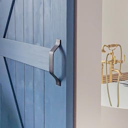 Minimalistyczna klamka do drzwi przesuwnych doskonale pasuje do drewnianych drzwi w każdym stylu wnętrza. Prosta konstrukcja umożliwia szybkie i łatwe otwieranie.