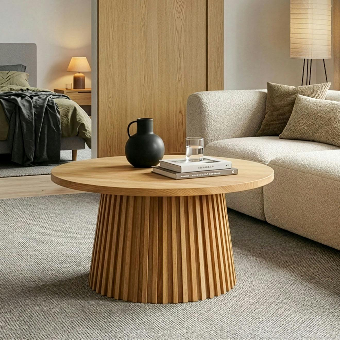 Okrągły kształt stolika sprzyja swobodzie aranżacji i jest idealnym centrum każdej strefy wypoczynku. Sprawdzi się przy spotkaniach towarzyskich, stanowiąc funkcjonalne i stylowe miejsce na kawę, książkę czy dekoracje.