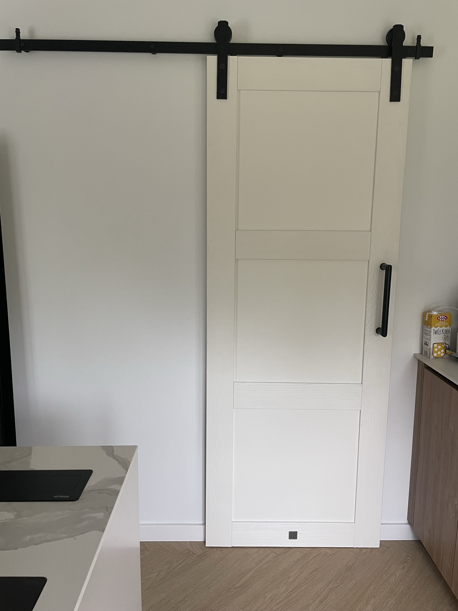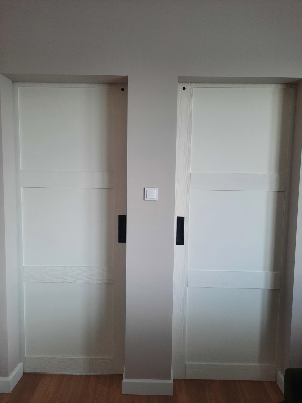 Drzwi są już zamontowane i wyglądają super. Mam dwie uwagi i z chęcią się podzielę: - belka przy drzwiach, według mnie powinna być cieńsza, w moim przypadku gdy będzie montowana do ściany zabiera za dużo miejsca, wydaje mi się że 4cm byłoby wystarczające. Jestem w trakcie poszukiwania miejsca aby ja przyciąć. Jak ja zamontuje podzielę się zdjęciem. - frez prowadzący na dole: frez przechodzi centralnie przez otwory gdzie wpuszczone sa śruby. W tych miejscach drzwi przy przesuwaniu dostają większego luzu na boki. Wydaje mi się że zastosowanie zaślepki i przefrezowanie na gładko pomogłoby rozwiązać problem lub zastosowanie dłuższego ślizgu. Bez względu na te drobne detale jestem zadowolony i polecam państwa drzwi.