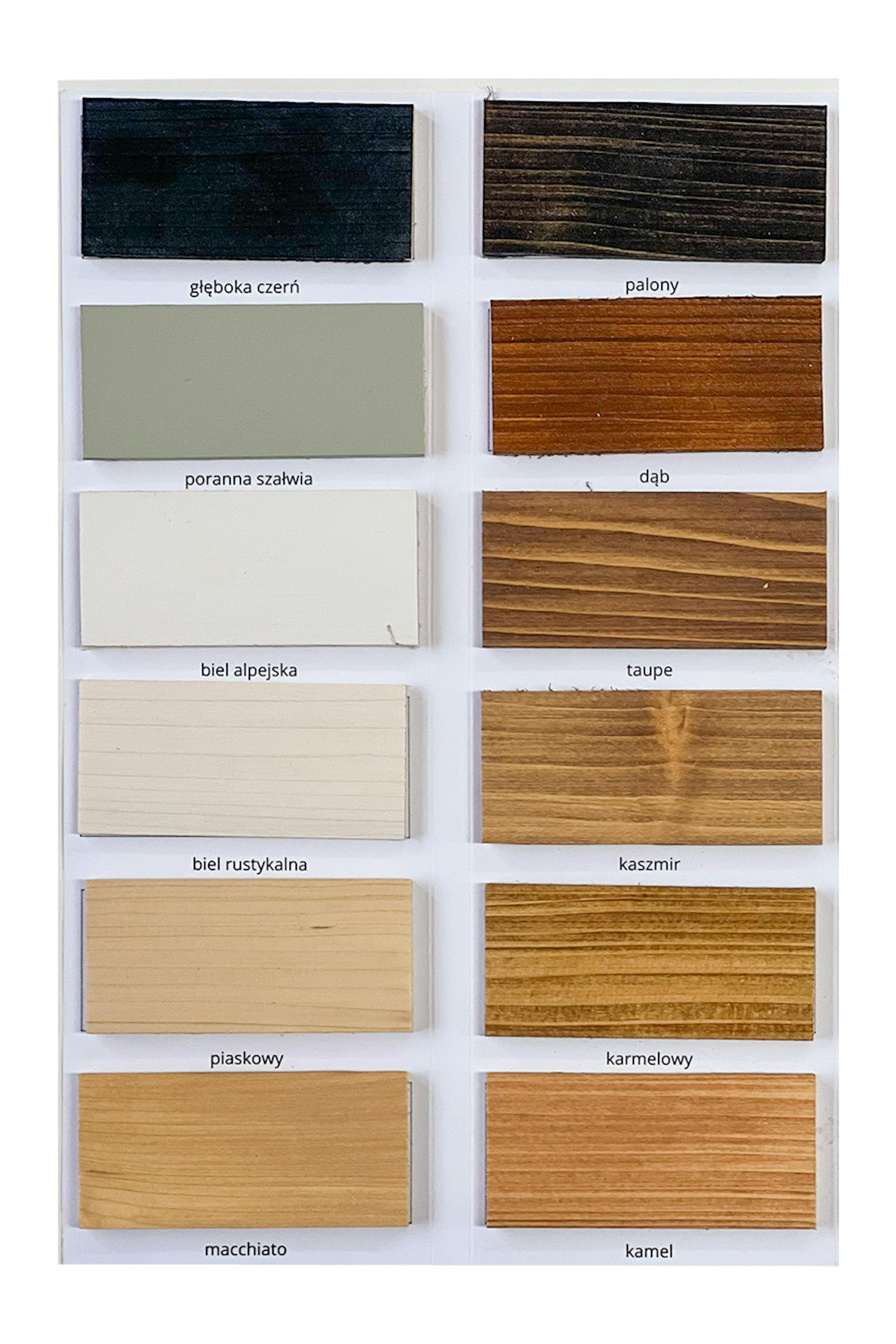 Kolory te stanowią kombinację najpopularniejszych i najbardziej uniwersalnych wykończeń dla drewna sosnowego.