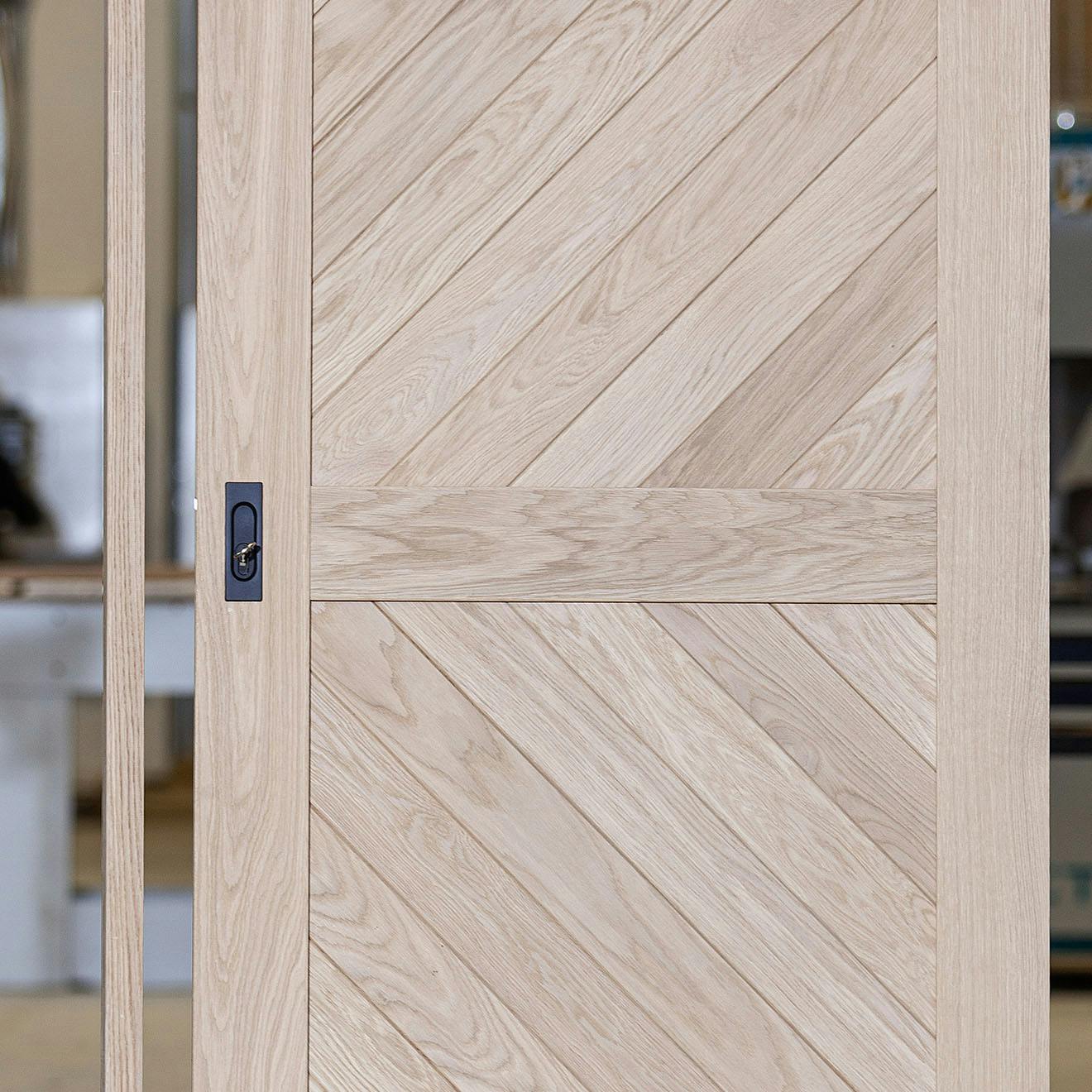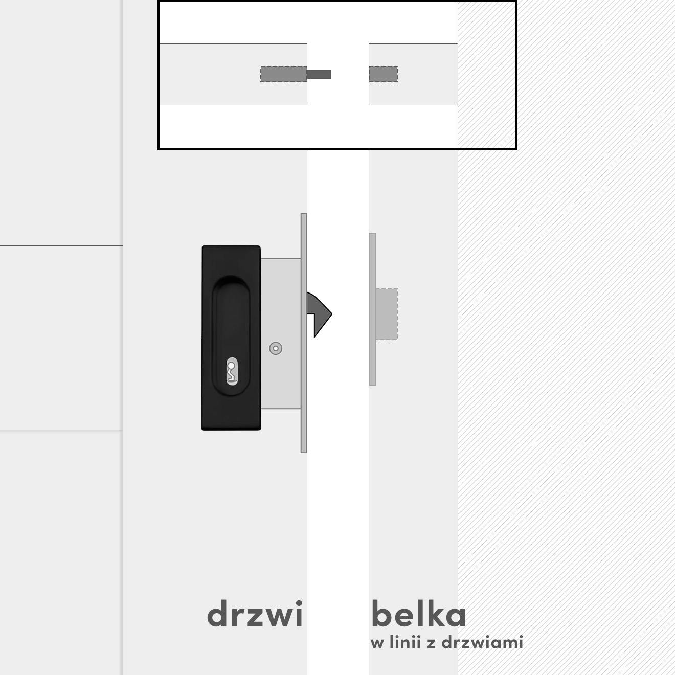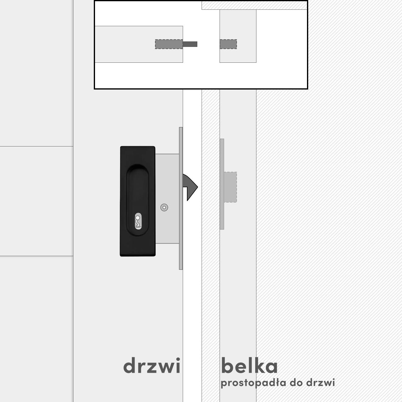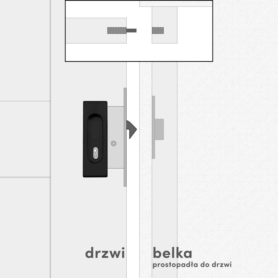 Do każdego zamka dołączamy dopasowaną drewnianą belkę w kolorze drzwi. Solidny hak zamka precyzyjnie chowa się wewnątrz belki, zapewniając pewne i stabilne zamknięcie drzwi przesuwnych.