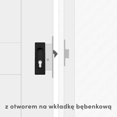 Zamki ze zintegrowanymi klamkami przeznaczone są do drzwi drewnianych. Uchwyty wykonane są z wysokiej jakości stali, malowanej proszkowo na kolor czarny lub biały. Mechanizm zamka w kolorze ocynk srebrny montuje się w krawędzi skrzydła, tak aby nie wystawał poza jego płaszczyznę.