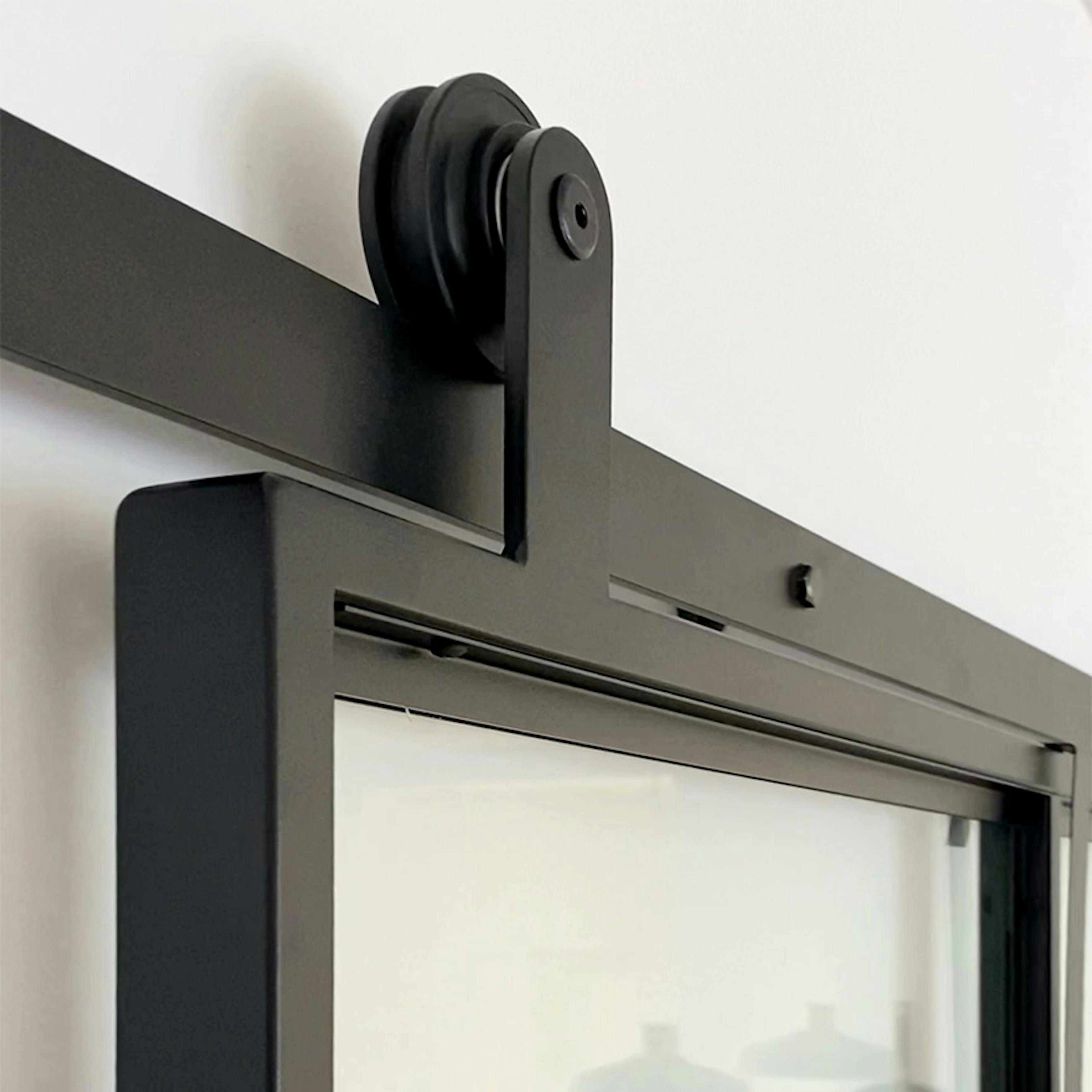 Prowadnica pozwala na precyzyjne i płynne ruchy drzwi przesuwnych. Wykonana jest ze stali malowanej proszkowo na czarno, co zapewnia trwałość i estetyczny wygląd. Montaż na ścianie jest prosty i szybki.