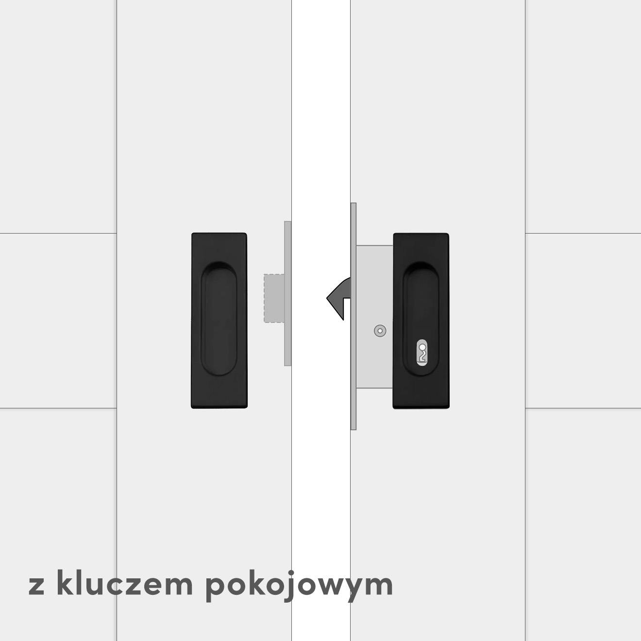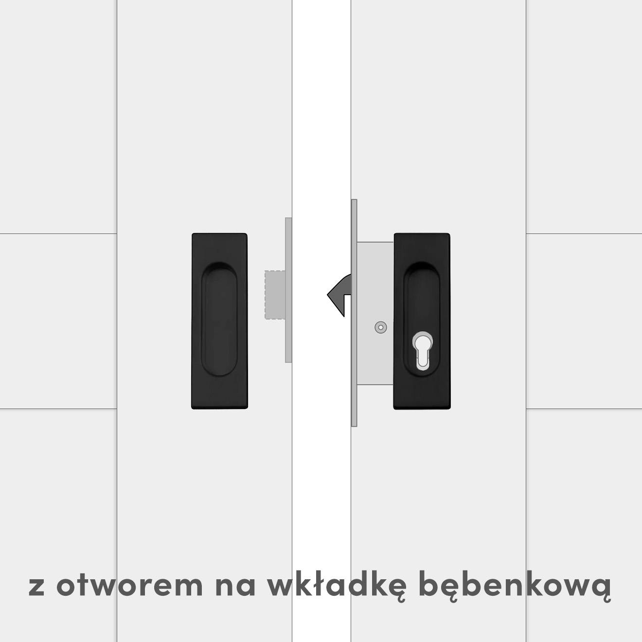 Zamki do dwuskrzydłowych drzwi przesuwnych składają się ze wpuszczanych uchwytów ze zintegrowanym zamkiem. Wyróżnia je minimalistyczny design i prosta forma. Owalne wgłębienie idealnie wpasowuje się w kwadratowy kształt uchwytu, zapewniając estetykę i wygodę użytkowania.